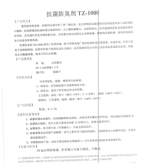 上一篇:抗菌防臭整理劑